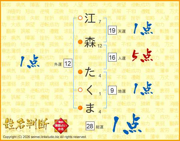 江森たくまさんの総運は28画の1点!