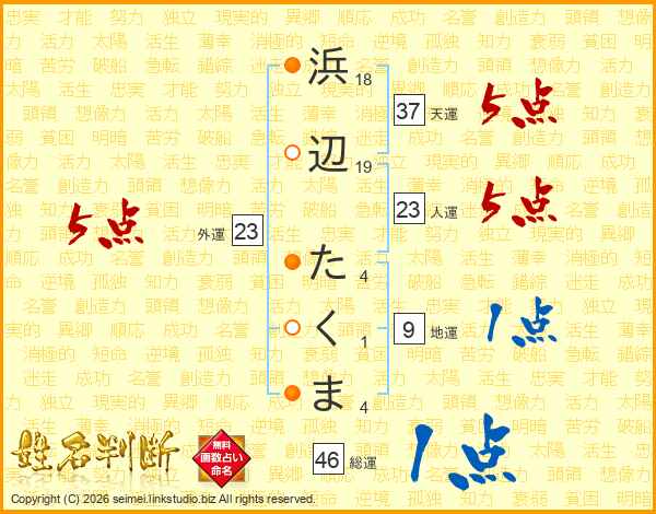 浜辺たくまさんの総運は46画の1点!