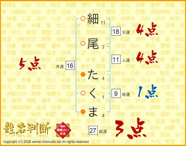 細尾たくまさんの総運は27画の3点!