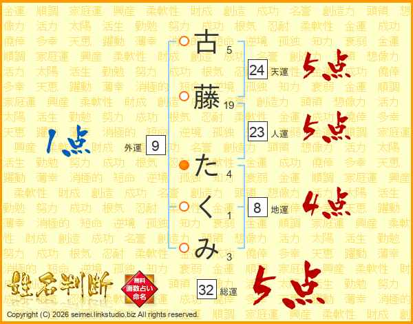 古藤たくみさんの総運は32画の5点!