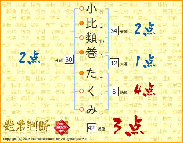 小(3画)比(4画)類(19画)巻(8画) た(4画)く(1画)み(3画)