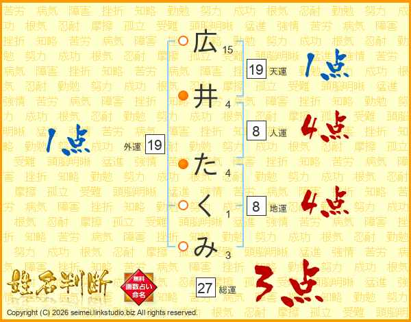 広井たくみさんの総運は27画の3点!
