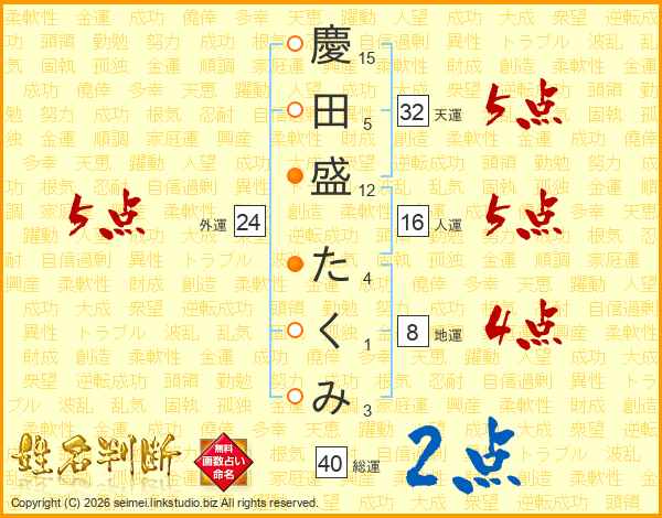 慶田盛たくみさんの総運は40画の2点!