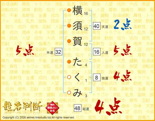横須賀たくみさんの総運は48画の4点!