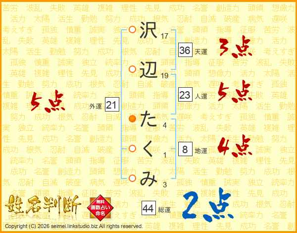 沢辺たくみさんの総運は44画の2点!