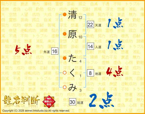 清原たくみさんの総運は30画の2点!