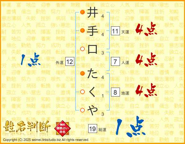 井手口たくやさんの人運は7画の4点!