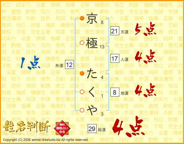 京極たくやさんの天運は21画の5点!