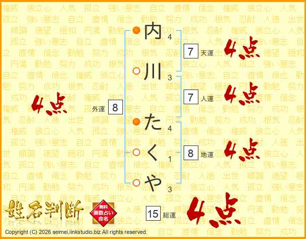 内川たくやさんの総運は15画の4点!