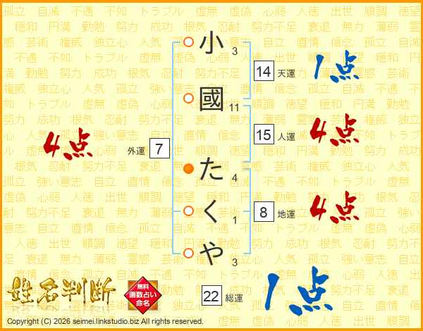 小國たくやさんの人運は15画の4点!