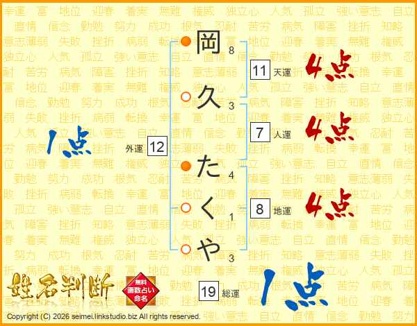 岡久たくやさんの総運は19画の1点!
