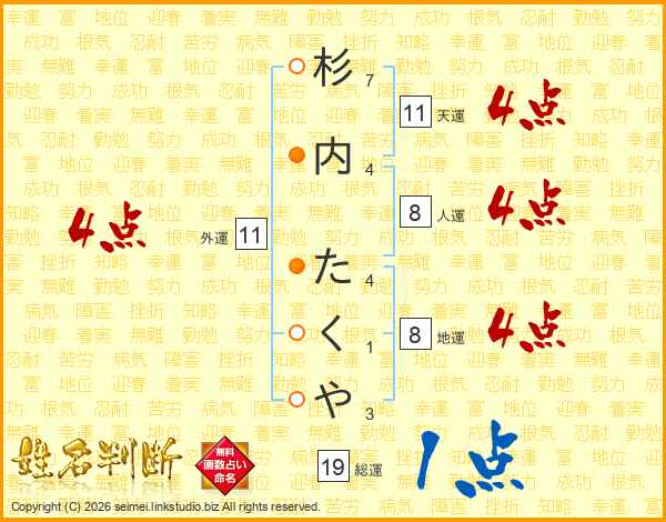 杉内たくやさんの天運は11画の4点!