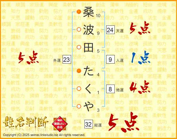 桑波田たくやさんの総運は32画の5点!