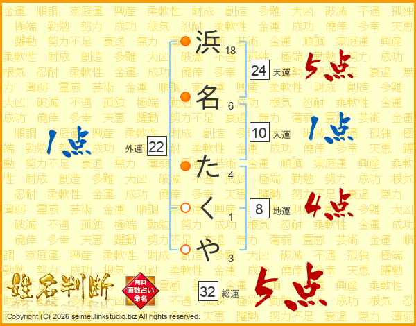 浜名たくやさんの総運は32画の5点!