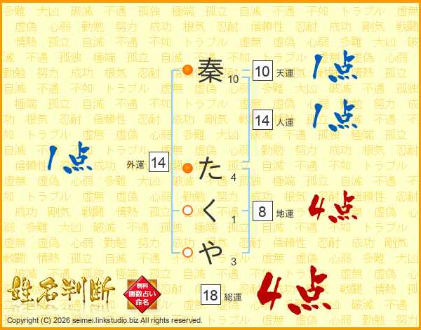 秦たくやさんの総運は18画の4点!