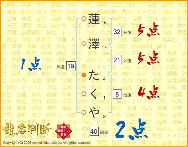 蓮澤たくやさんの総運は40画の2点!