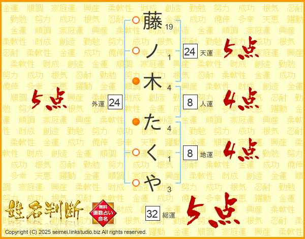 藤(19画)ノ(1画)木(4画) た(4画)く(1画)や(3画)