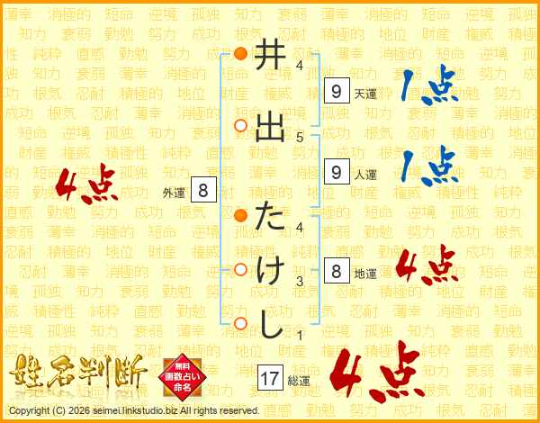 井出たけしさんの総運は17画の4点!