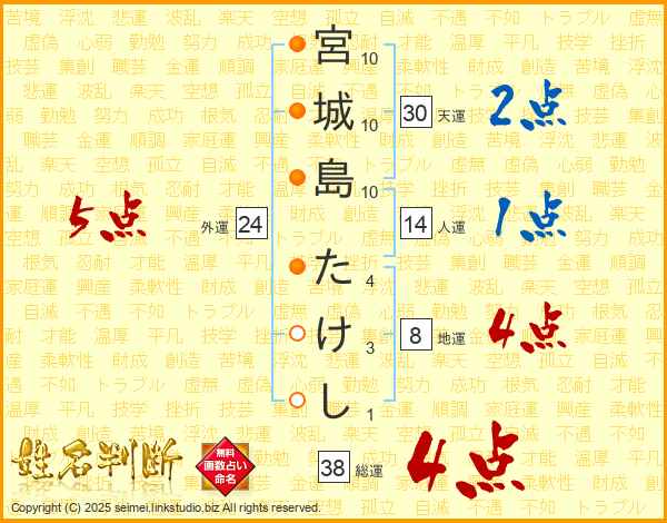 宮城島たけしさんの総運は38画の4点!