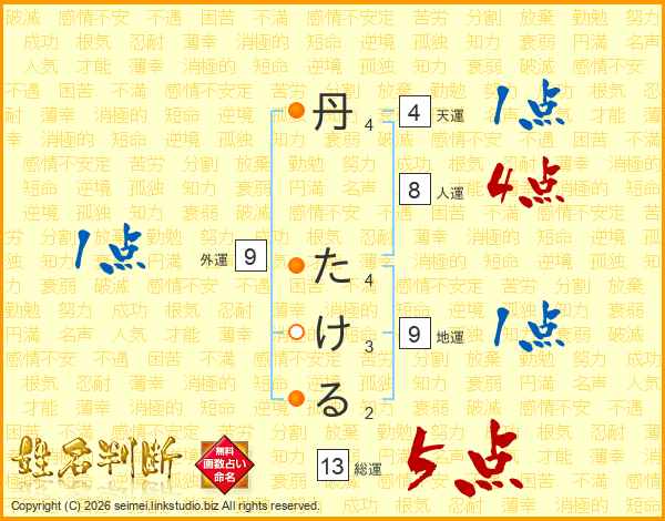 丹たけるさんの総運は13画の5点!