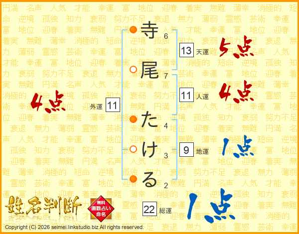 寺尾たけるさんの天運は13画の5点!
