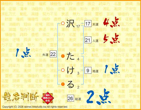 沢たけるさんの総運は26画の2点!