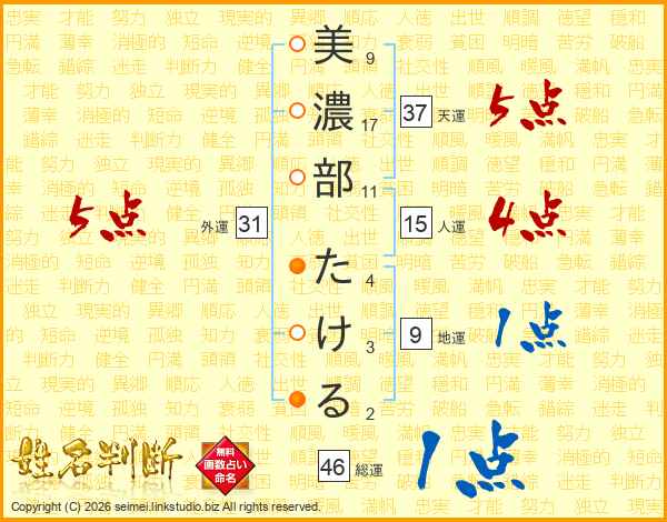 美濃部たけるさんの総運は46画の1点!