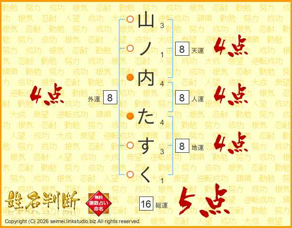 山ノ内たすくさんの総運は16画の5点!