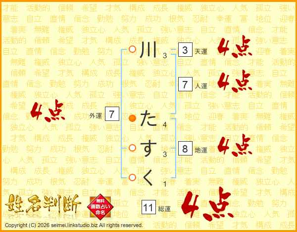 川たすくさんの人運は7画の4点!