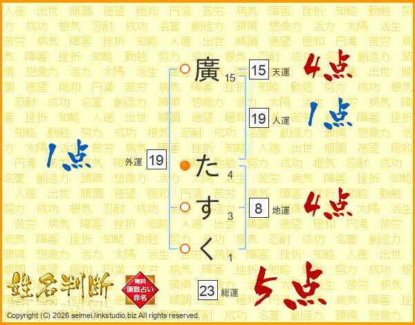 廣たすくさんの総運は23画の5点!