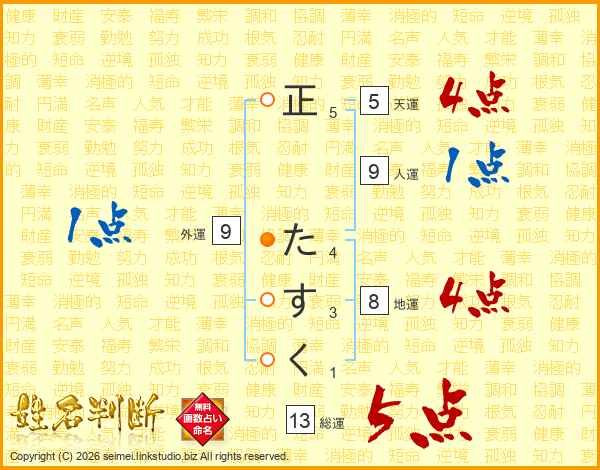 正たすくさんの総運は13画の5点!