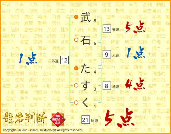 武石たすくさんの総運は21画の5点!