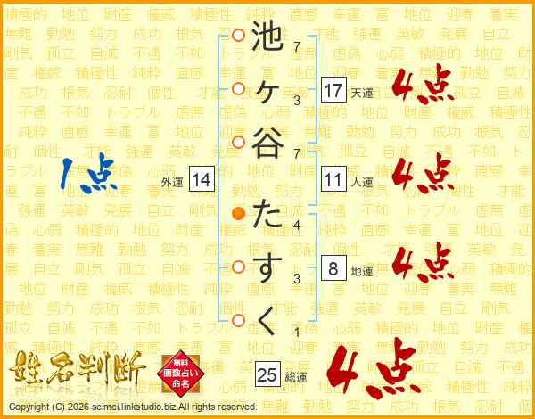 池(7画)ヶ(3画)谷(7画) た(4画)す(3画)く(1画)