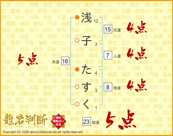 浅(12画)子(3画) た(4画)す(3画)く(1画)