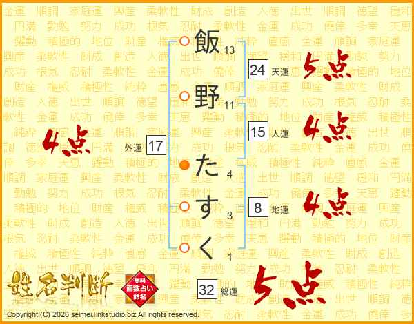 飯野たすくさんの総運は32画の5点!