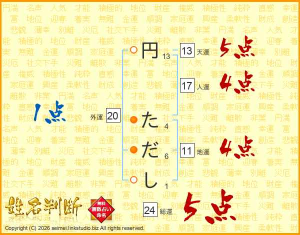 円ただしさんの総運は24画の5点!