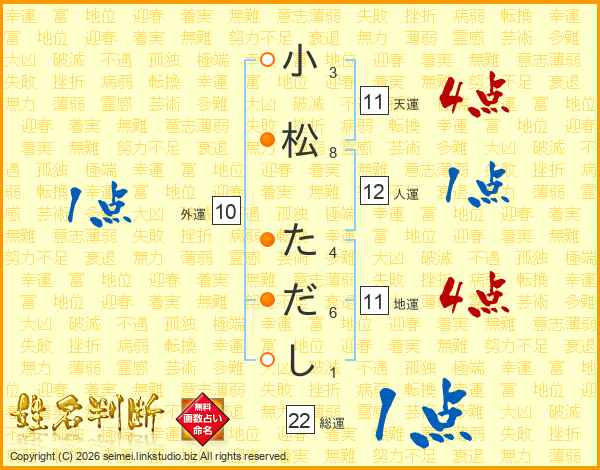 小(3画)松(8画) た(4画)だ(6画)し(1画)
