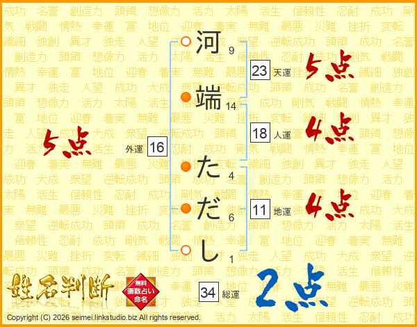 河端ただしさんの総運は34画の2点!