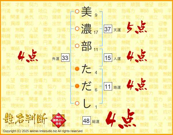 美濃部ただしさんの外運は33画の4点!