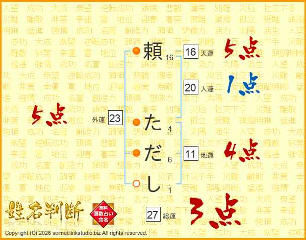 頼ただしさんの総運は27画の3点!