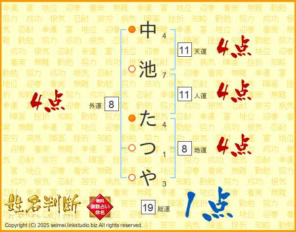 中池たつやさんの天運は11画の4点!