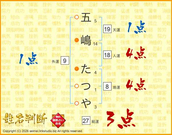 五嶋たつやさんの総運は27画の3点!