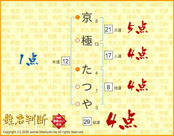 京極たつやさんの天運は21画の5点!