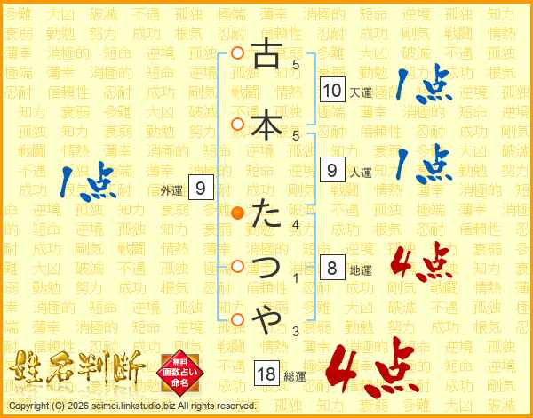 古(5画)本(5画) た(4画)つ(1画)や(3画)