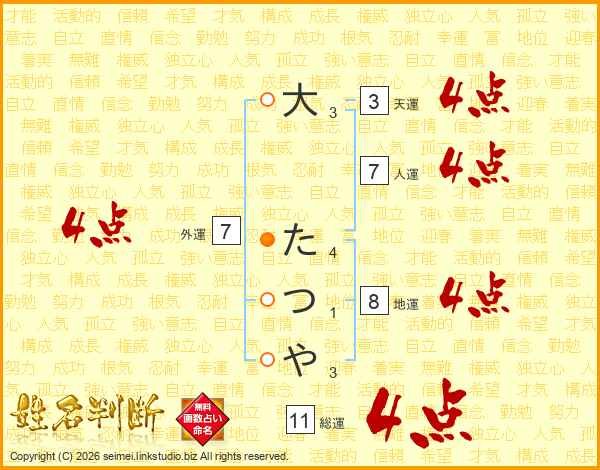 大たつやさんの総運は11画の4点!