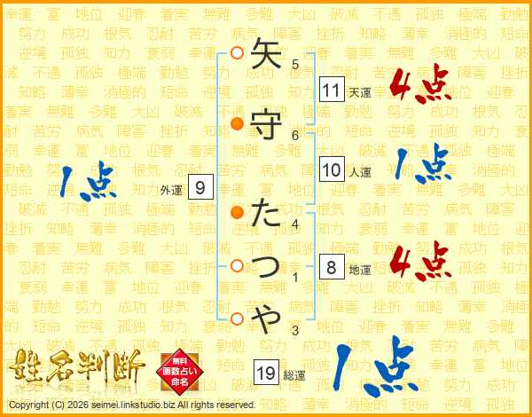 矢守たつやさんの天運は11画の4点!
