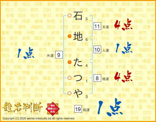 石地たつやさんの総運は19画の1点!