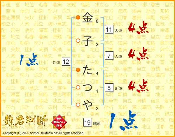 金子たつやさんの天運は11画の4点!
