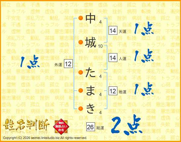 中城たまきさんの総運は26画の2点!