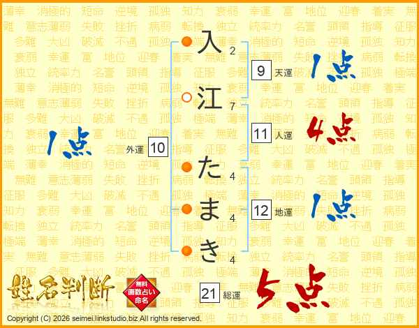 入江たまきさんの総運は21画の5点!